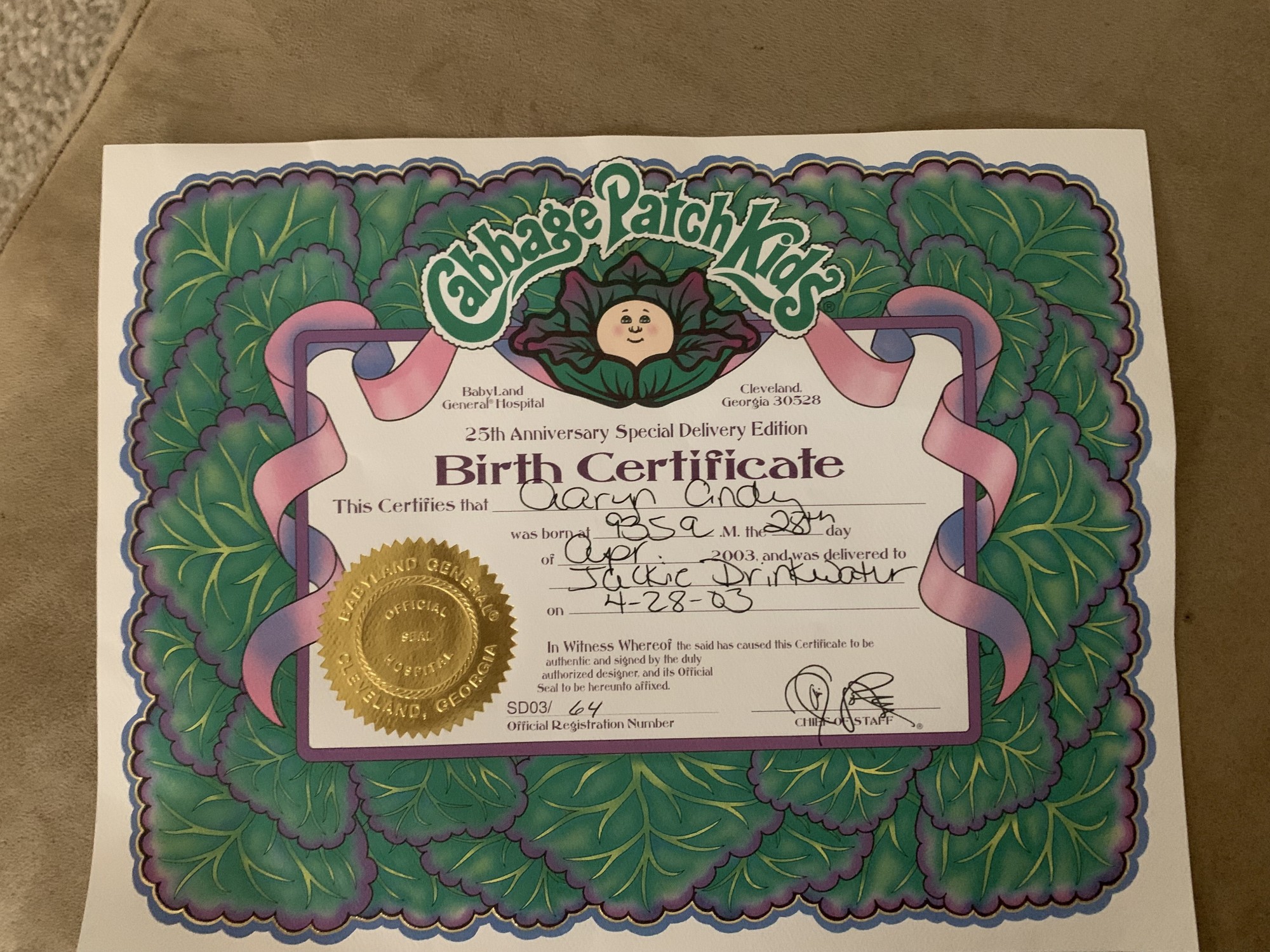 25th ANNIVERSARY STORK BABY -AARYN CINDY